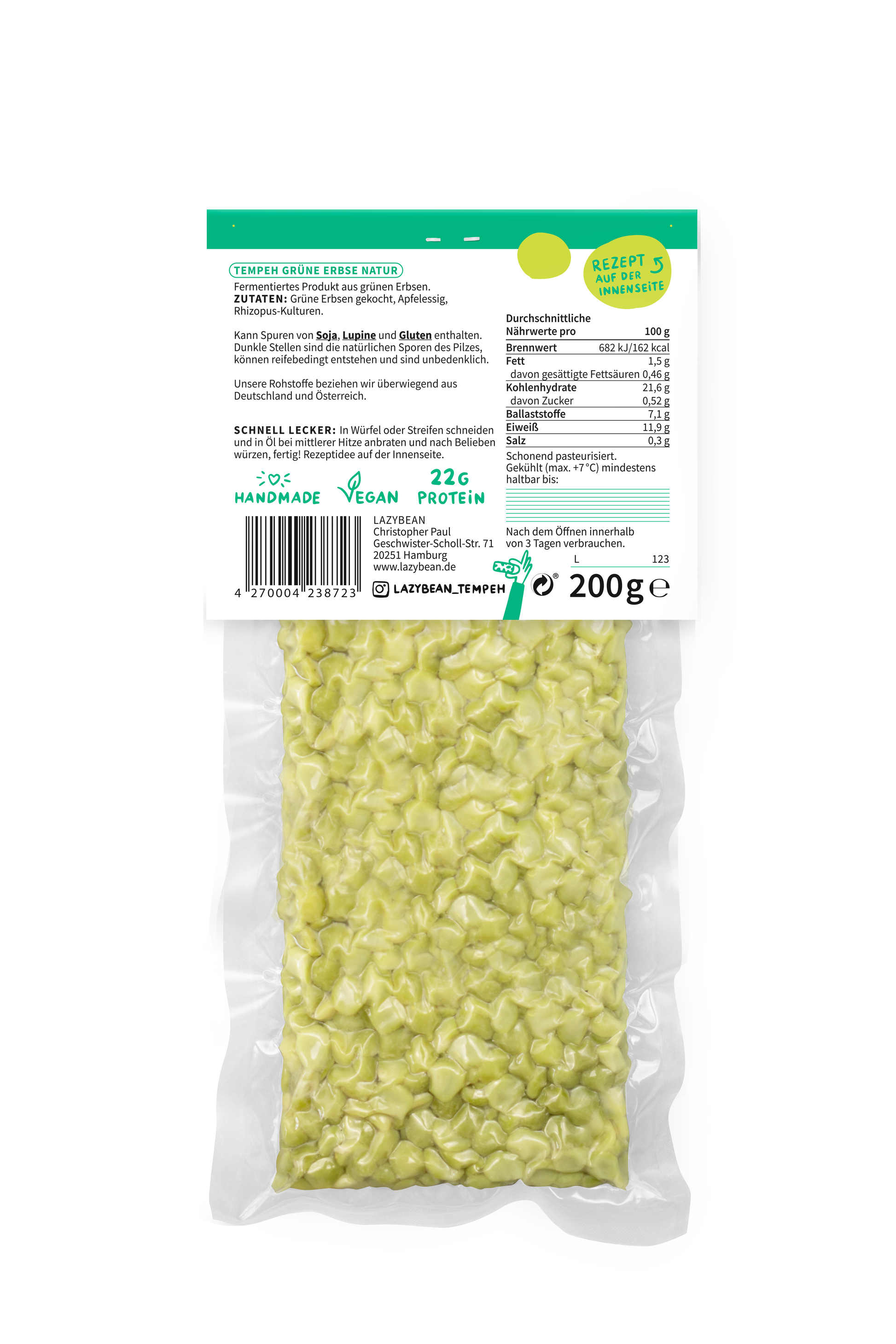 3er-Packung Grüne Erbsen-Tempeh Natur.