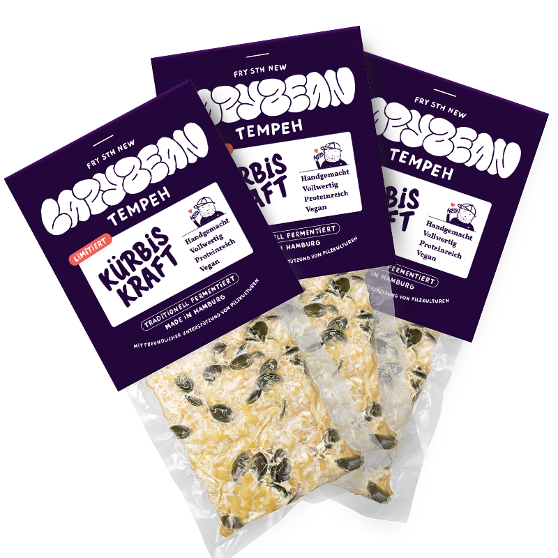 Mit dem Herbst kommt unser Community Liebling wieder zurück ins Sortiment: Kürbiskraft! Kichererbsen-Tempeh verfeinert mit Kürbiskernen. Super lecker und ein Hingucker auf dem Teller.
