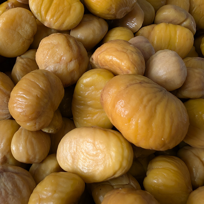 Fermentierte Kichererbsen, Maronen und Sonnenblumenkerne.